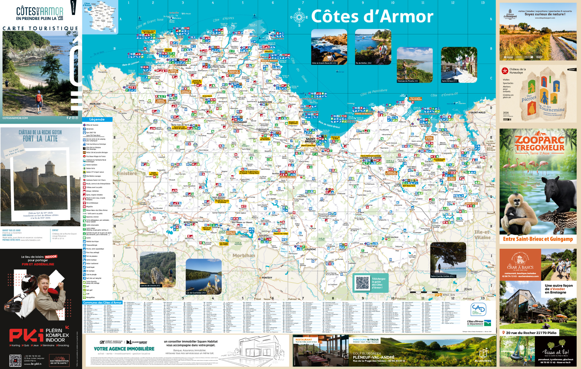 Côté recto, les pictogrammes qualifiant les 348 communes et les points d’intérêt des Côtes d’Armor (services touristiques, patrimoines, labels, offres de loisir…) ont été mis à jour.